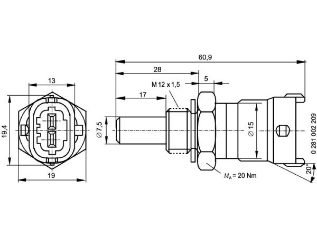 Описание на продукт Датчик, температура на охладителната течност BOSCH 0 281 002 209 за FIAT DUCATO (250) пътнически от 2006