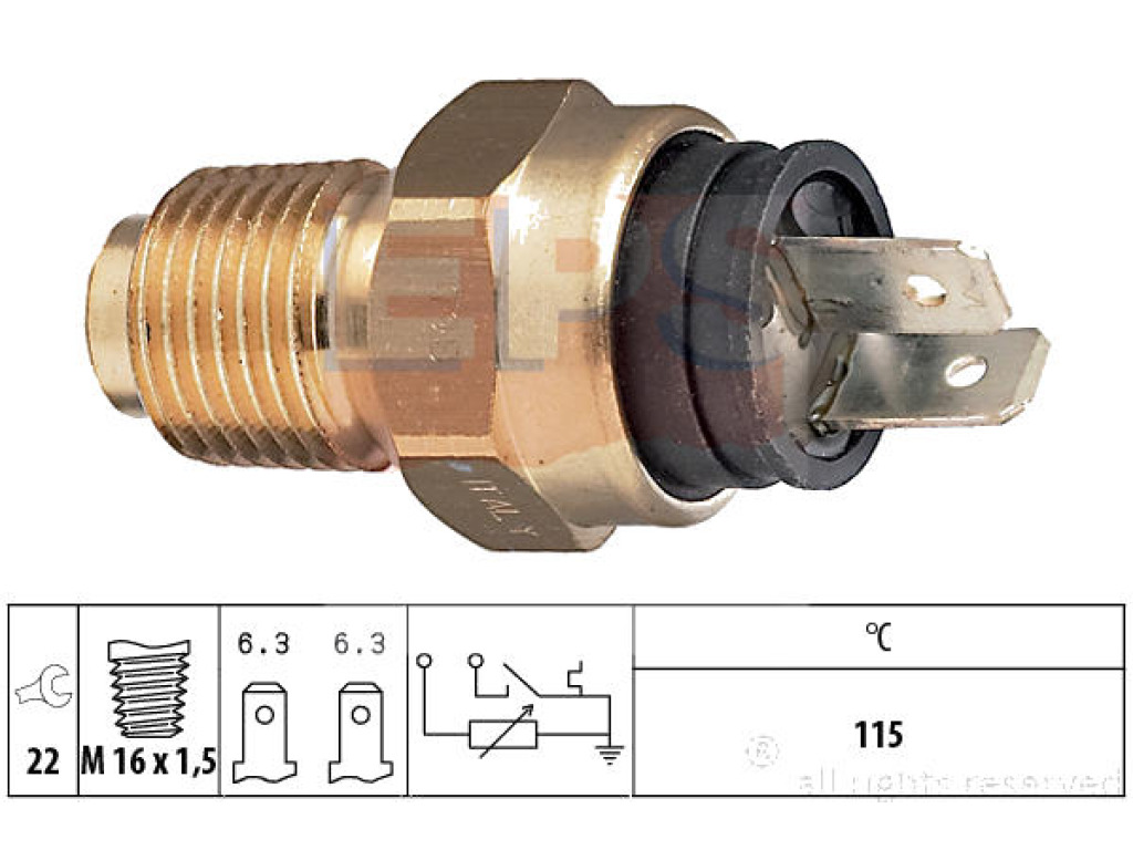 Описание на продукт Датчик, температура на охладителната течност EPS 1.830.500 за LANCIA PRISMA (831AB0) от 1983 до 1992