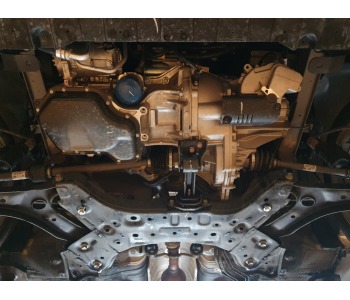 Метална кора под двигателя и скоростна кутия с качествена изработка защитена от корозия. Има отвор за смяна на маслото, така че няма да бъде необходимо свалянето й за смяната му. Включени са монтажни елементи. С метална кора, вие ще предпазите своя автомобил от бордюри, камъни, пясък и неравности по пътя. С помощта на аеродинамичната и форма, ще намалите въздушното съпротивление под автомобила и движението ще стане по-ефективно.