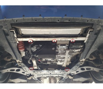 Метална кора под двигателя и скоростна кутия с качествена изработка защитена от корозия. Има отвор за смяна на маслото, така че няма да бъде необходимо свалянето й за смяната му. Включени са монтажни елементи. С метална кора, вие ще предпазите своя автомобил от бордюри, камъни, пясък и неравности по пътя. С помощта на аеродинамичната и форма, ще намалите въздушното съпротивление под автомобила и движението ще стане по-ефективно.