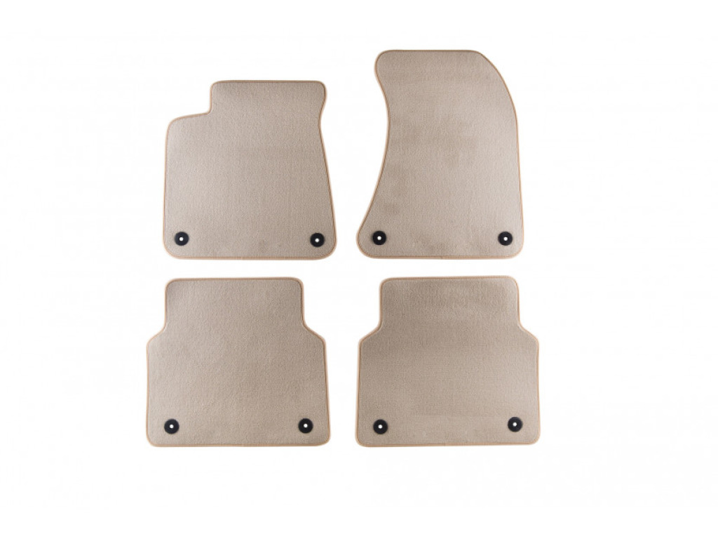 Автомобилни мокетни стелки за Audi А8 03/2010=> 4 ЧАСТИ БЕЖОВИ с изключително високо качество на изработка и пасване. За направата им e използван висококачествен мокет. Долната им част е гумирана. Гарантирано дълъг живот. Директно се поставят без никакви допълнителни корекции. В комплекта се включват щипки за по-добро закрепване. Стелките са произведени в Германия.