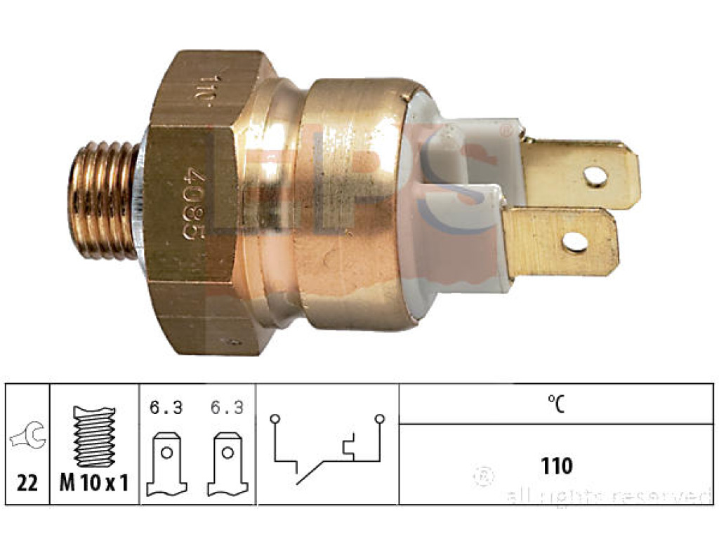 Описание на продукт Термошалтер, предупредителна лампа за охладителната течност EPS 1.840.085 за AUDI 200 (44, 44Q, C3) от 1983 до 1991
